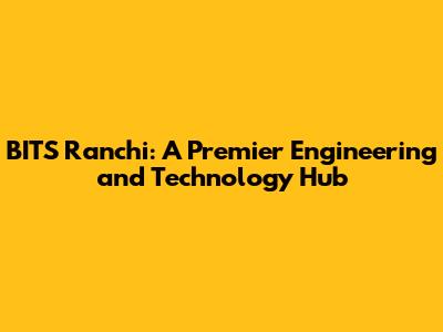 BITS Ranchi: A Premier Engineering And Technology Hub