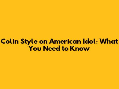 Colin Style On American Idol: What You Need To Know