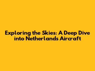 Exploring The Skies: A Deep Dive Into Netherlands Aircraft
