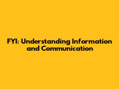 FYI: Understanding Information And Communication