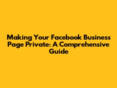 Hey guys! Ever wondered if you could make your Facebook Business Page private? Well, it's a bit of a tricky question. Unlike personal profiles, Facebook Business Pages are designed to be public so businesses can connect with their audience, but there are ways to control who sees what and manage your page's visibility. Let's dive into how you can manage your Facebook Business Page's privacy and visibility.