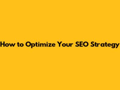 How To Optimize Your SEO Strategy