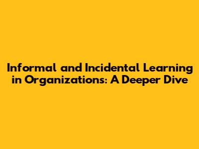 Informal & Incidental Learning In Organizations