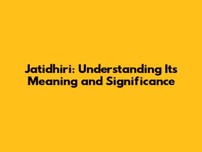 Jatidhiri: Understanding Its Meaning And Significance