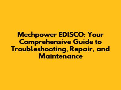 Mechpower EDISCO: Troubleshooting, Repair, And Maintenance Guide