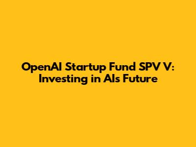 OpenAI Startup Fund SPV V: Investing In AI's Future