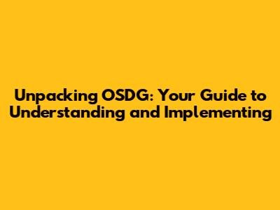 Unpacking OSDG: Your Guide to Understanding and Implementing