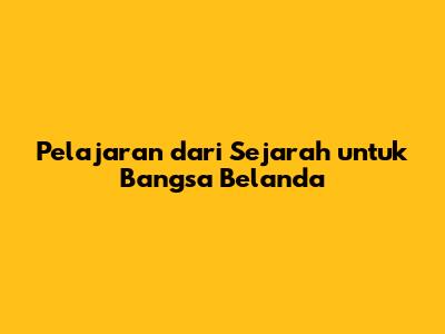 Pelajaran Dari Sejarah Untuk Bangsa Belanda