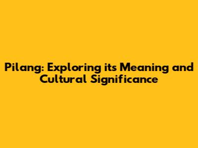 Pilang: Exploring Its Meaning And Cultural Significance