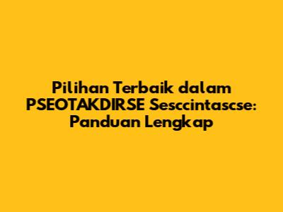 Pilihan Terbaik Dalam PSEOTAKDIRSE Sesccintascse