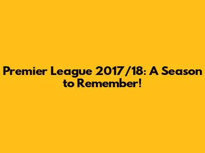 Premier League 2017/18: A Season To Remember!