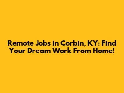 Remote Jobs In Corbin, KY: Find Your Dream Work From Home!