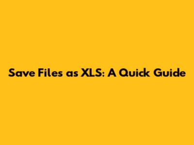 Save Files As XLS: A Quick Guide