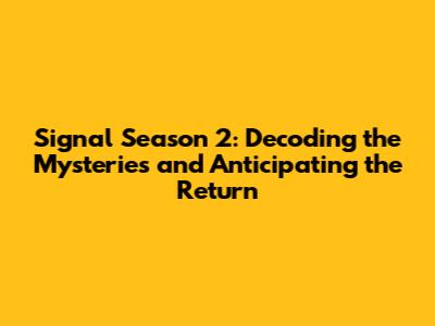 The Burning Question: When Will Signal Season 2 Premiere?