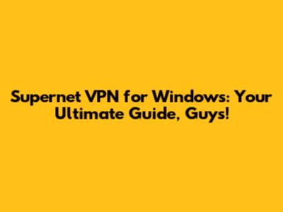 Supernet VPN For Windows: Ultimate Guide