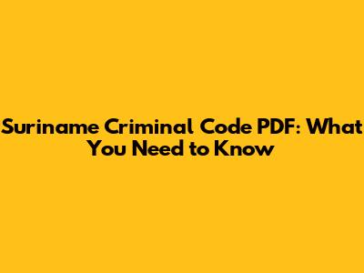 Suriname Criminal Code PDF: What You Need To Know