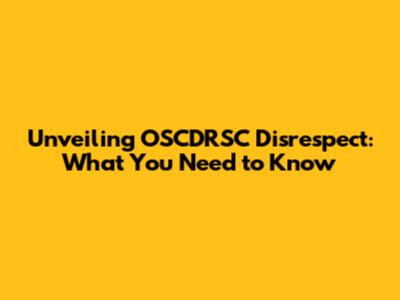 Unveiling OSCDRSC Disrespect: What You Need To Know
