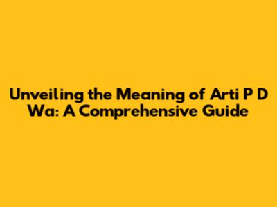 Unveiling The Meaning Of 'Arti P D Wa': A Comprehensive Guide