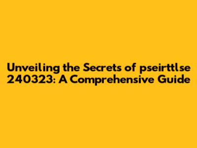 Unveiling The Secrets Of Pseirttlse 240323: A Comprehensive Guide