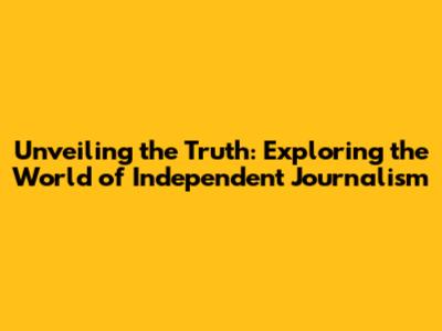 Unveiling The Truth: Exploring The World Of Independent Journalism