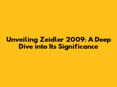 Unveiling Zeidler 2009: Insights And Impact